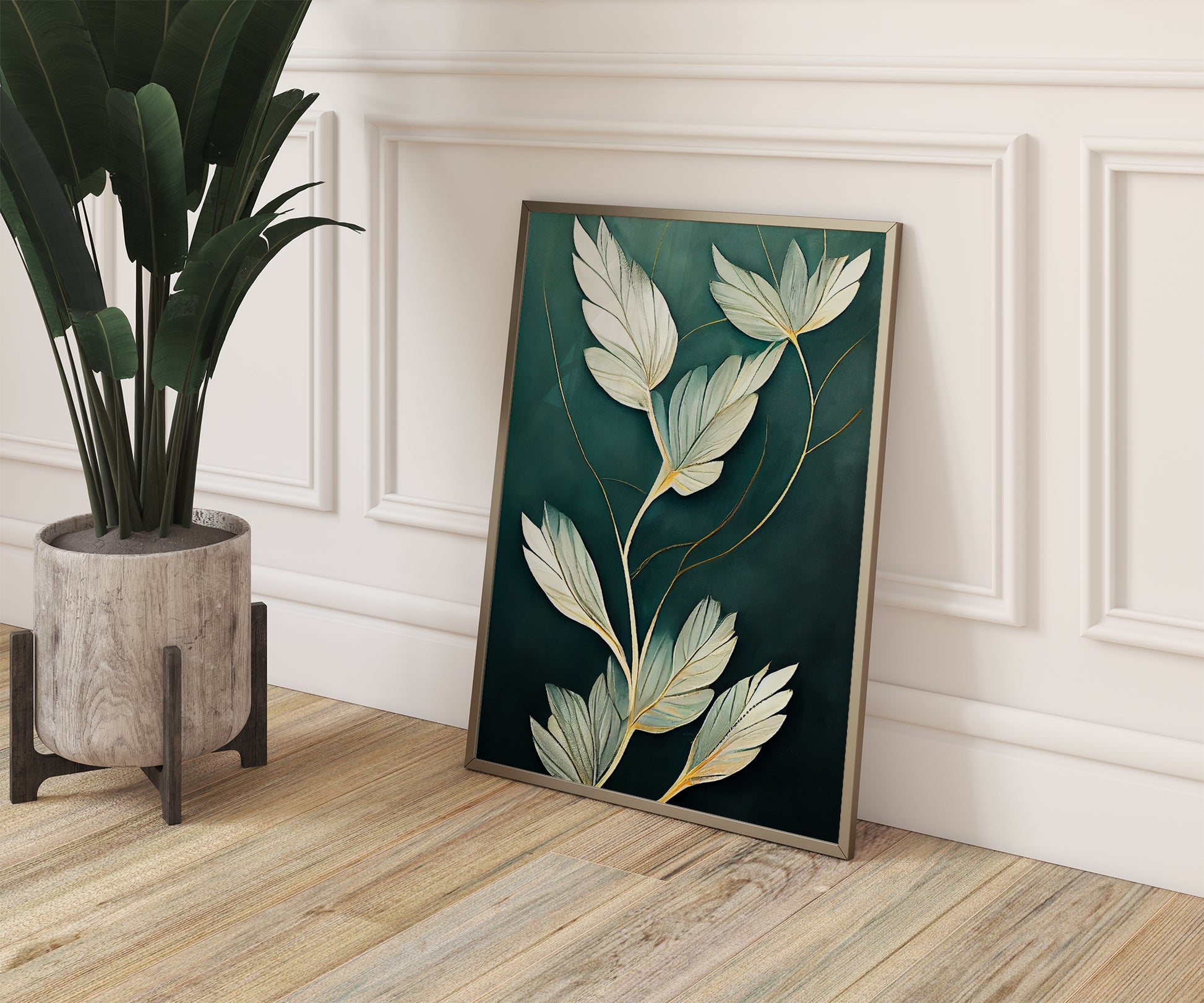 A set of 3 gold, turquoise, blue abstract ginko leaf prints. Please note these do not feature real gold foil, just ink. Printed on 300gsm premium lustre-finish paper.