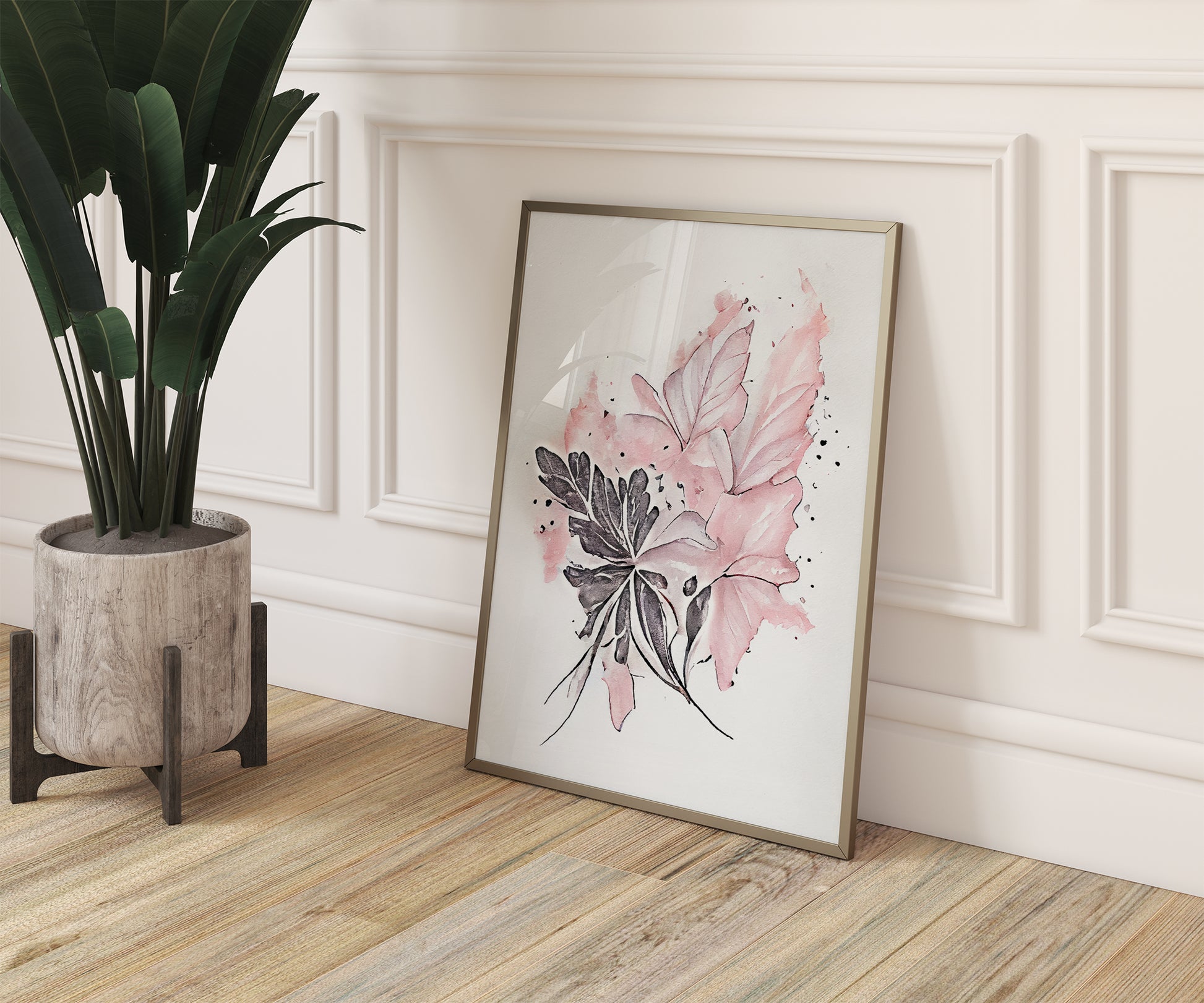 A pretty set of 3 watercolour floral abstract prints in pink with black detailing. Printed on 300gsm premium lustre-finish paper.